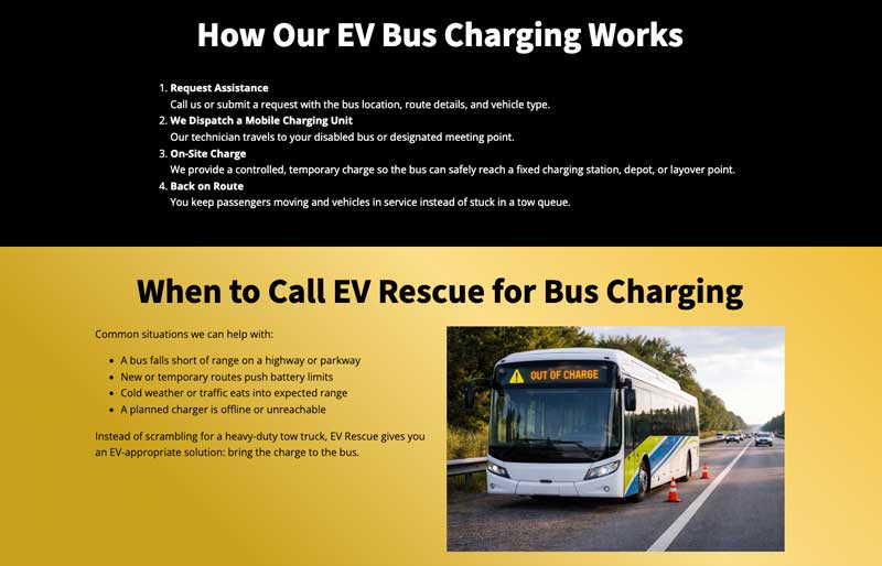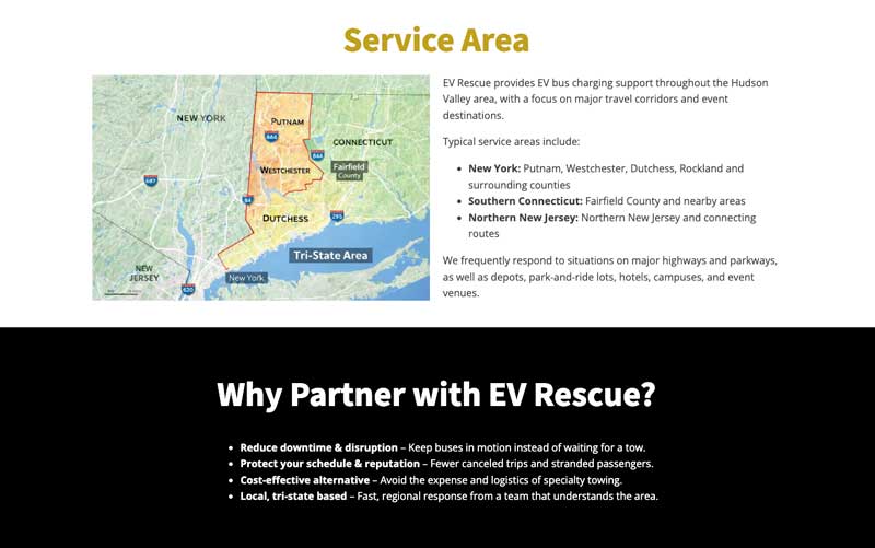Electric Vehicle Rescue is a specialized roadside assistance service providing emergency mobile charging for electric vehicles. The goal of this project was to create a clear, professional website that explains a relatively new service in a way that builds trust, educates users, and makes it easy to request help quickly. The website was designed with a strong focus on mobile usability, clear service explanations, and fast access to contact information. The final result is a clean, user-friendly WordPress website that supports both immediate service requests and long-term business growth.