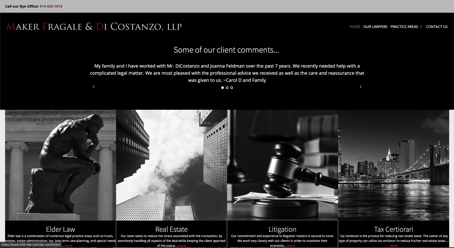 When Maker, Fragale & Di Costanzo approached SunCoast Web Studio, they had a clear vision for their website—a clean, modern design in black and white with subtle touches of color for emphasis. Beyond aesthetics, they also wanted the site to capture the essence of the beautiful Westchester, New York City, and Hudson Valley region, reflecting the local roots of their law firm. Built in Oxygen + WordPress, the final website is sleek, professional, and highly functional, offering an intuitive user experience that ensures easy navigation for potential clients. The homepage features stunning regional imagery, seamlessly blending the firm’s strong legal expertise with a deep connection to the community they serve. We are extremely proud of the outcome, and the firm was thrilled with the result. Take a look at the site and let us know what you think!
